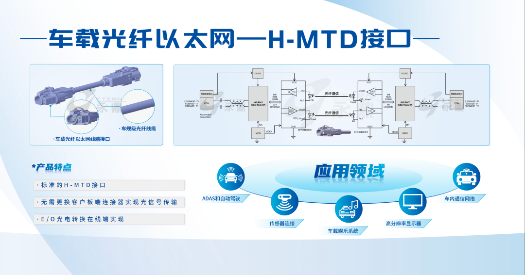 本次展會(huì)永鼎除展示已批量化生產(chǎn)的TFF/AWG系列波分產(chǎn)品、高精度系列MT-FA產(chǎn)品、光模塊系列產(chǎn)品及光纖光纜產(chǎn)品外,介紹了新產(chǎn)品:車載光纖連接系統(tǒng)。